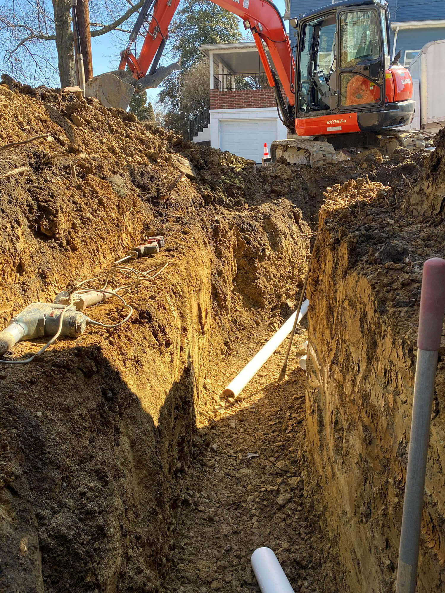 French Drain Installer in Pittsburgh French Drain installation services in Pittsburgh, PA. Save your home or business by diverting water away from your structure and prevent water damage or basement flooding. We install French and Storm Drains in Pittsburgh, PA, Allegheny County, Westmoreland County, Butler County, Penn Twp, and Armstrong County. Get a free french drain installation estimate now! We also offer excavation service in Allegheny, Armstrong, Westmoreland, Butler, Penn County, Pittsburgh. excavation, excavator, services, company, land clearing, site preparation, new construction, contractor, boring, trenching, drilling, digging, french drains, storm drains, demolition, landscaping, construction, footers, land development, grading, leveling, dredging, erosion control, emergency excavator, emergency services, Pittsburgh, Allegheny, Westmoreland, Butler, Penn, Armstrong, Indiana, County, Co, Pittsburgh, PA. Excavating Services Pittsburgh | French Drains Pittsburgh | Storm Water Management Pittsburgh | Land Clearing Pittsburgh | Demolition Company in Pittsburgh | Construction Site Preparations Pittsburgh | Landscaping Pittsburgh | Septic Tanks Pittsburgh | Emergency Excavator Services in Pittsburgh - French Drain Installer Pittsburgh, PA - Custom Website Design |