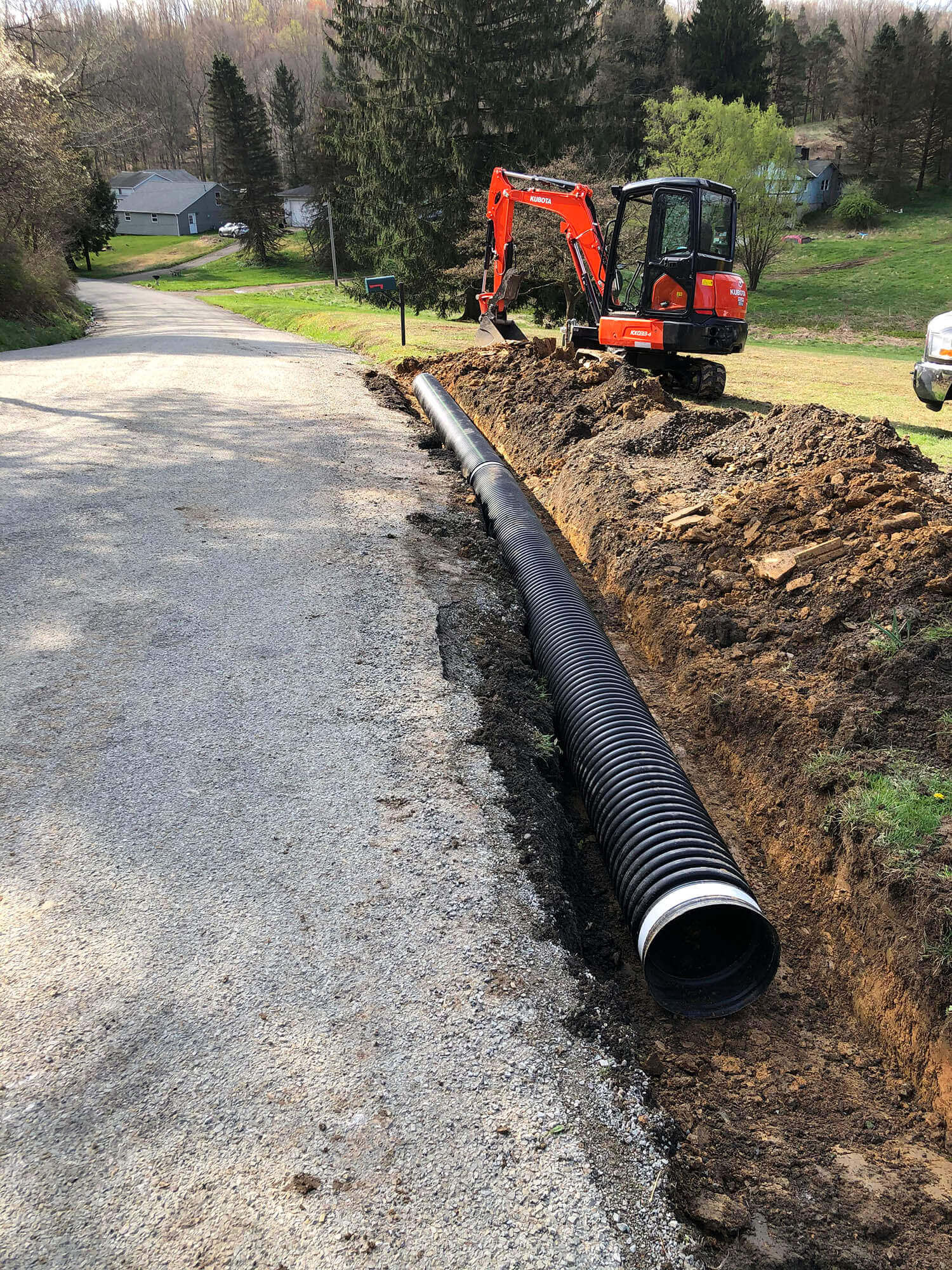 French Drain Installer in Pittsburgh French Drain installation services in Pittsburgh, PA. Save your home or business by diverting water away from your structure and prevent water damage or basement flooding. We install French and Storm Drains in Pittsburgh, PA, Allegheny County, Westmoreland County, Butler County, Penn Twp, and Armstrong County. Get a free french drain installation estimate now! We also offer excavation service in Allegheny, Armstrong, Westmoreland, Butler, Penn County, Pittsburgh. excavation, excavator, services, company, land clearing, site preparation, new construction, contractor, boring, trenching, drilling, digging, french drains, storm drains, demolition, landscaping, construction, footers, land development, grading, leveling, dredging, erosion control, emergency excavator, emergency services, Pittsburgh, Allegheny, Westmoreland, Butler, Penn, Armstrong, Indiana, County, Co, Pittsburgh, PA. Excavating Services Pittsburgh | French Drains Pittsburgh | Storm Water Management Pittsburgh | Land Clearing Pittsburgh | Demolition Company in Pittsburgh | Construction Site Preparations Pittsburgh | Landscaping Pittsburgh | Septic Tanks Pittsburgh | Emergency Excavator Services in Pittsburgh - French Drain Installer Pittsburgh, PA - Custom Website Design |